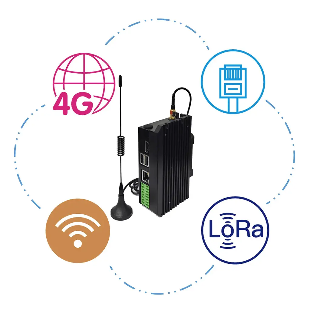 Grâce à la puissance de calcul du Raspberry Pi CM4 et à sa conception industrielle, l’EG410 permet un déploiement efficace pour des cas d’usage typiques tels que l’acquisition de données, l’analyse en périphérie (edge computing), le contrôle automatisé, et l’interconnexion avec des services cloud. Elle est équipée d’interfaces industrielles standards telles que RS232, RS-485, entrées/sorties numériques (DI/DO), et offre une connectivité réseau étendue incluant la 4G LTE, 3G, 2G, CAT M1 (eMTC), NB-IoT, le Wi-Fi double bande 2,4 GHz / 5 GHz, l’Ethernet Gigabit, ainsi qu’une option LoRaWAN via miniPCIe.